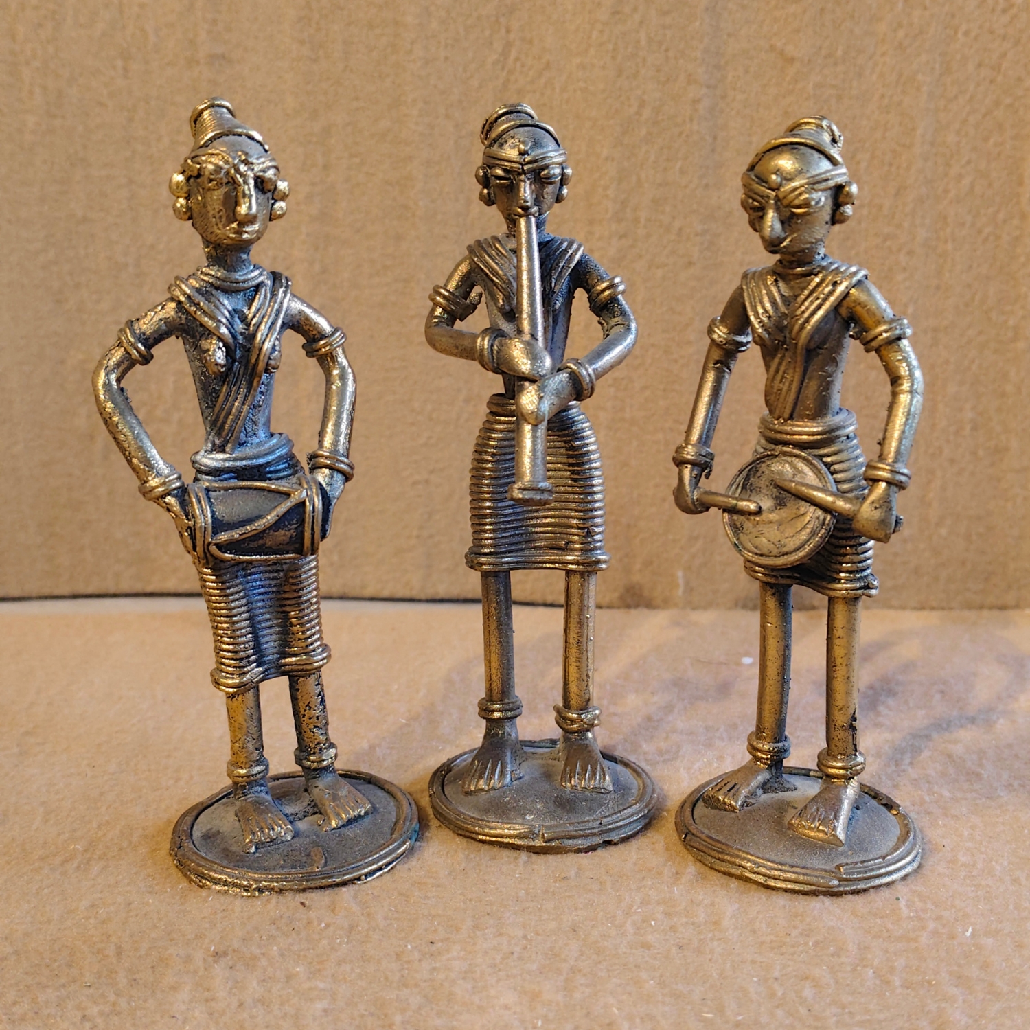 Dhokra Art Musician Figurines Set or Vintage Tribal Metal Musician Statues