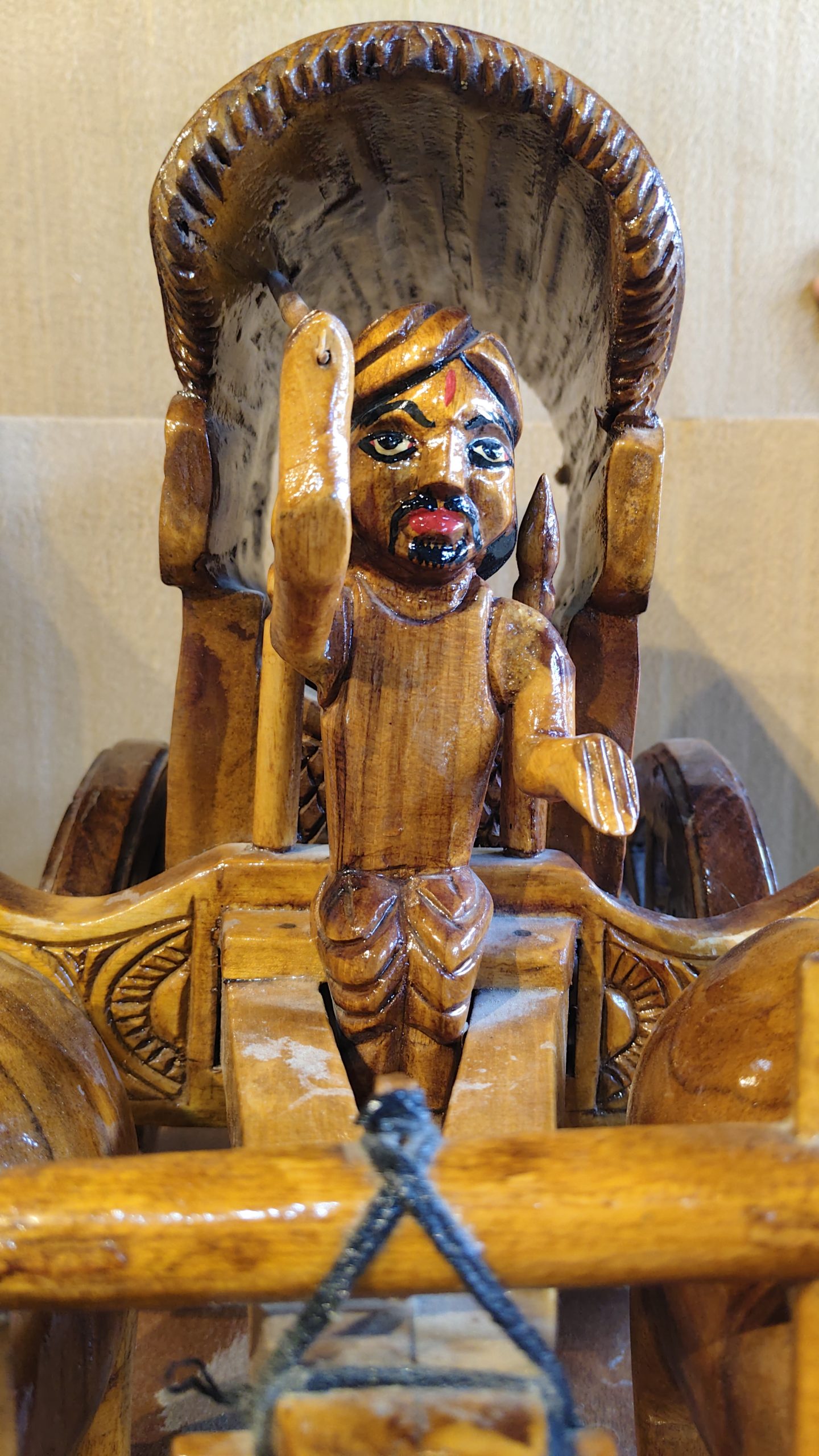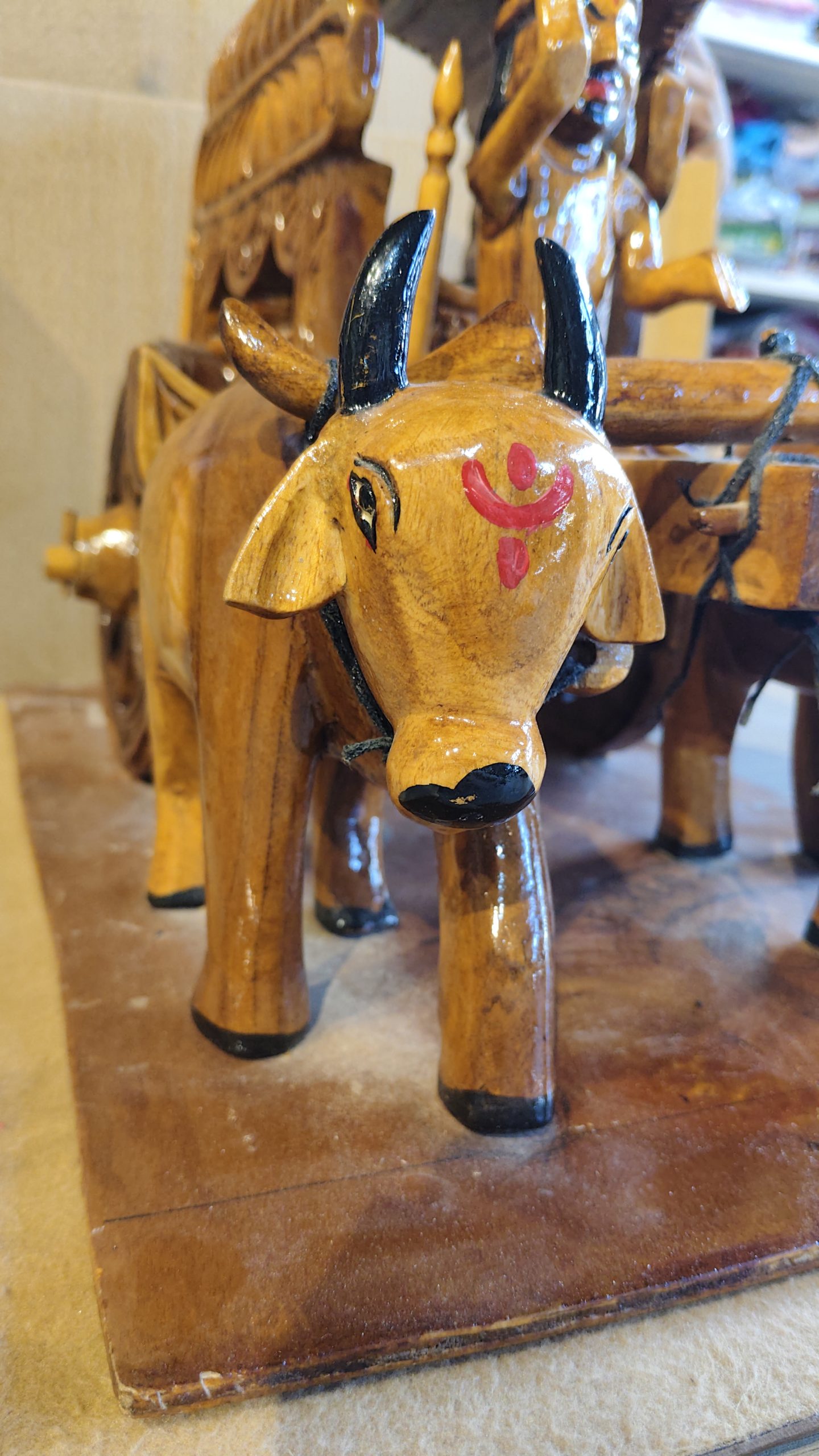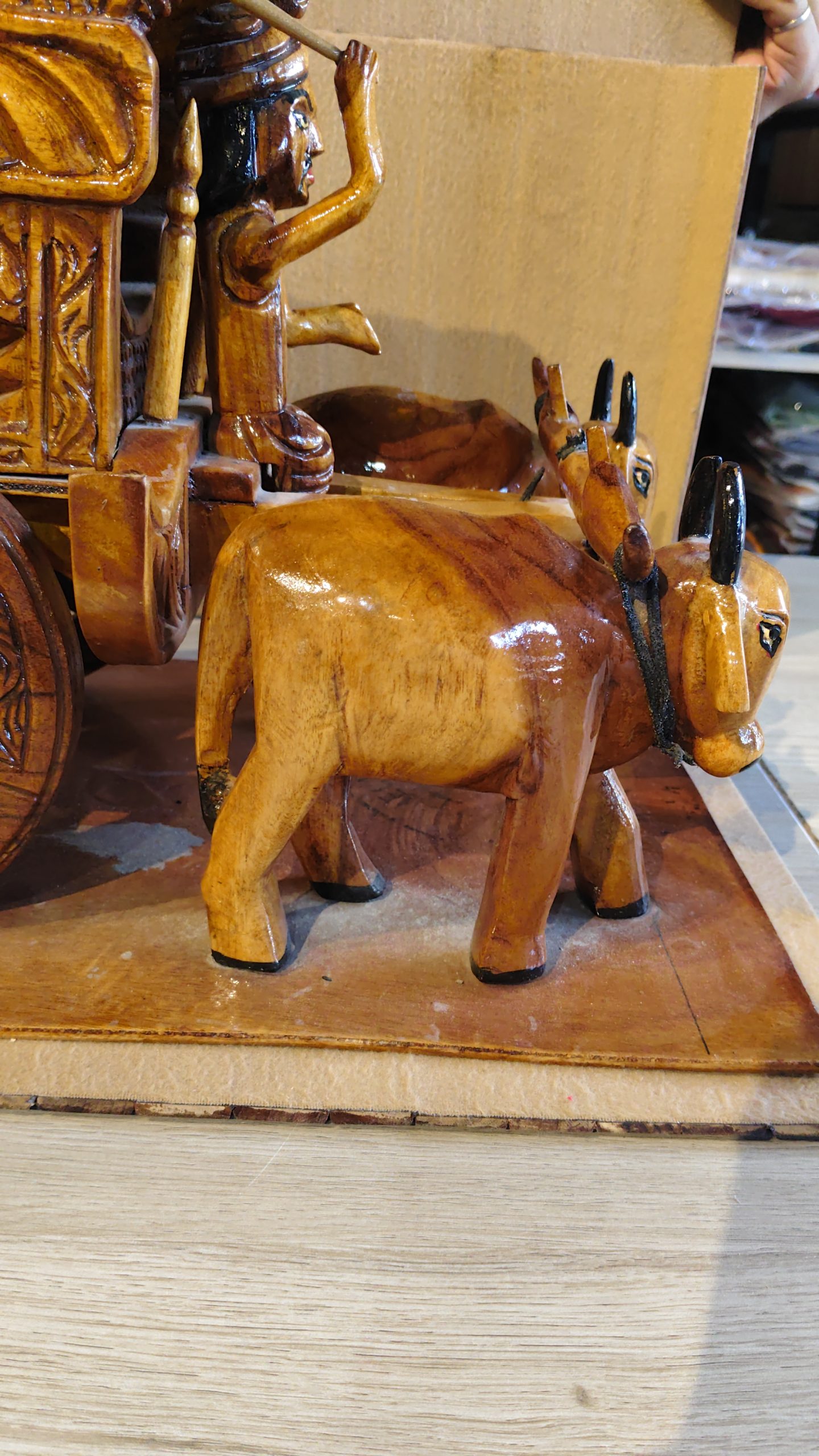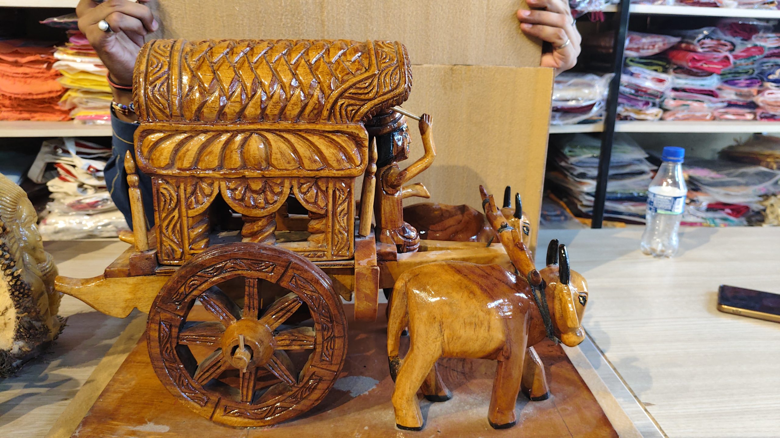 Hand-Carved Wooden Bullock Cart with Farmer Figurine