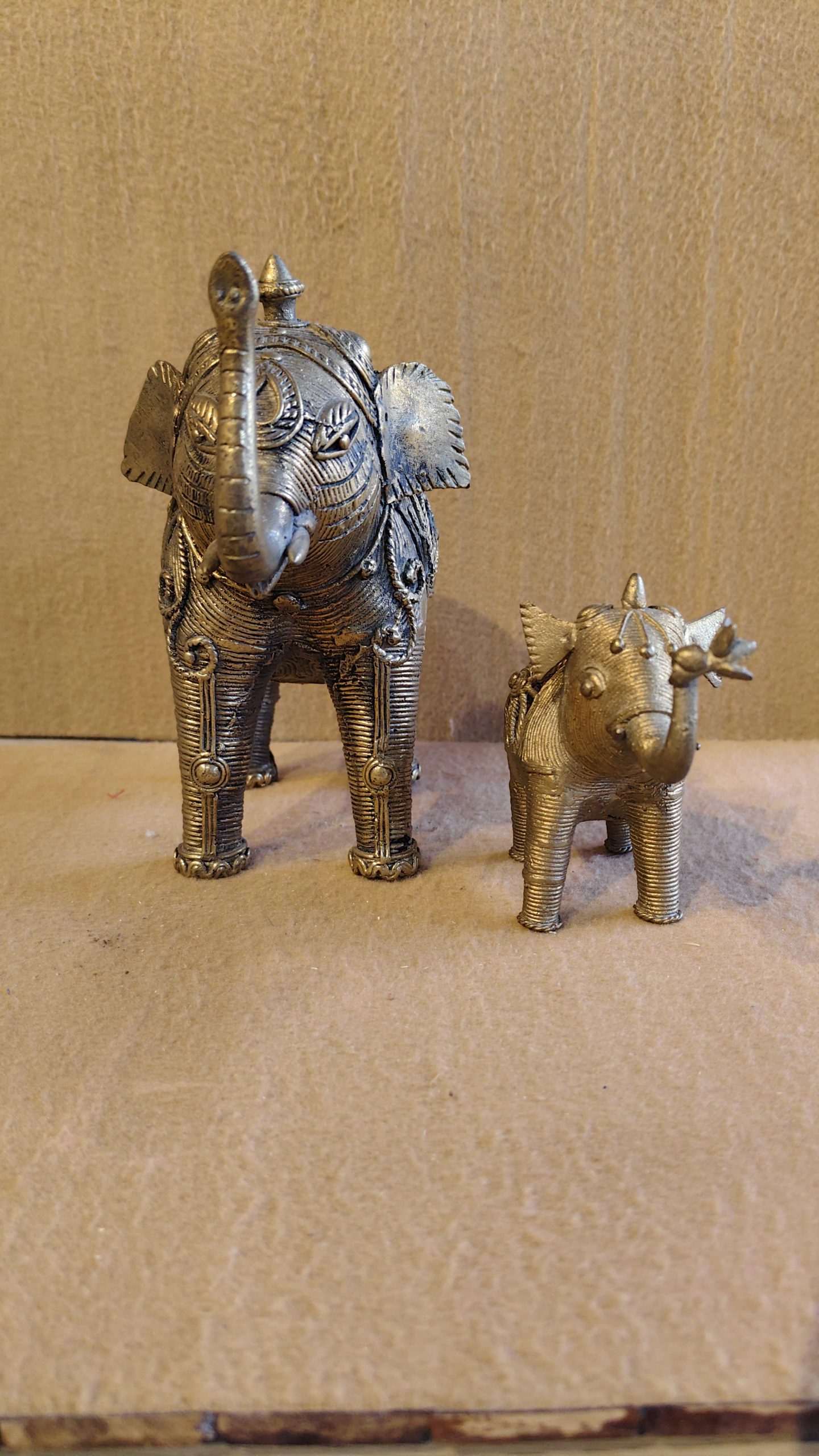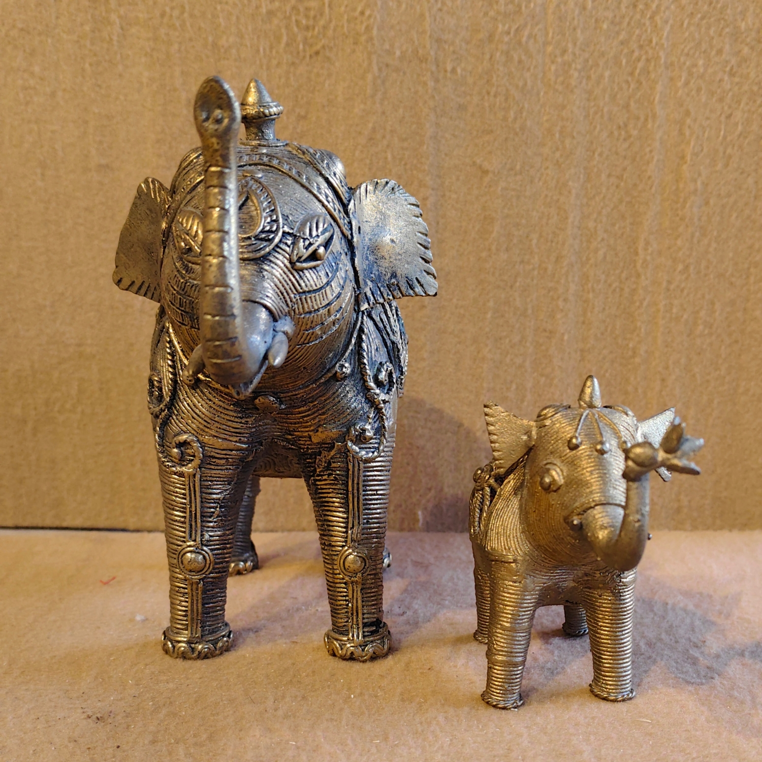 Handcrafted Dhokra Art Brass Elephant & Baby Figurine Set