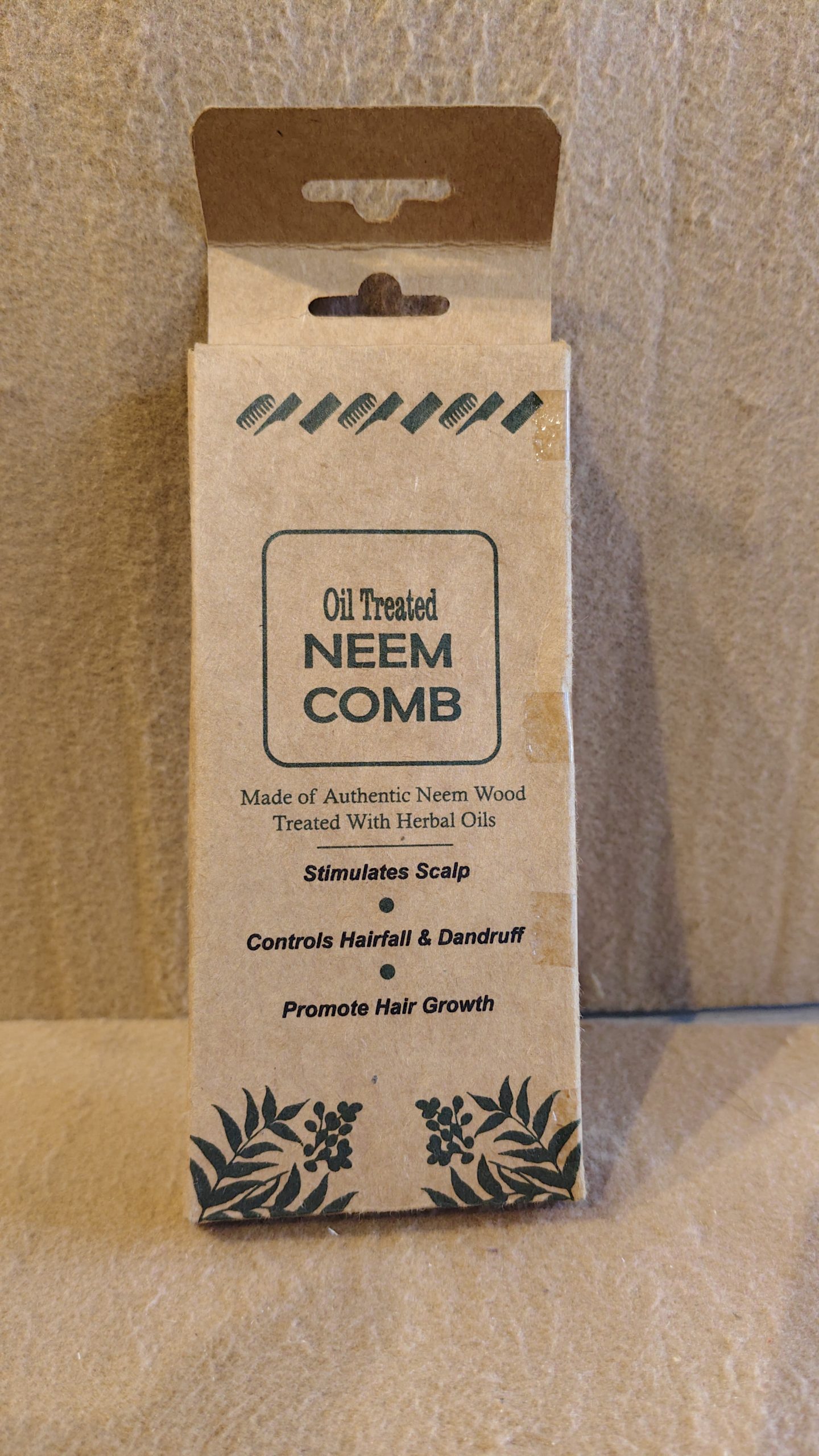 The comb is treated with herbal oils, which nourish the wood and enhance its benefits. The teeth are spaced to gently detangle hair without causing breakage or static. Using this comb regularly stimulates the scalp, improving blood circulation and encouraging healthy hair growth. The packaging is made from recyclable kraft paper, reflecting the product’s commitment to sustainability.