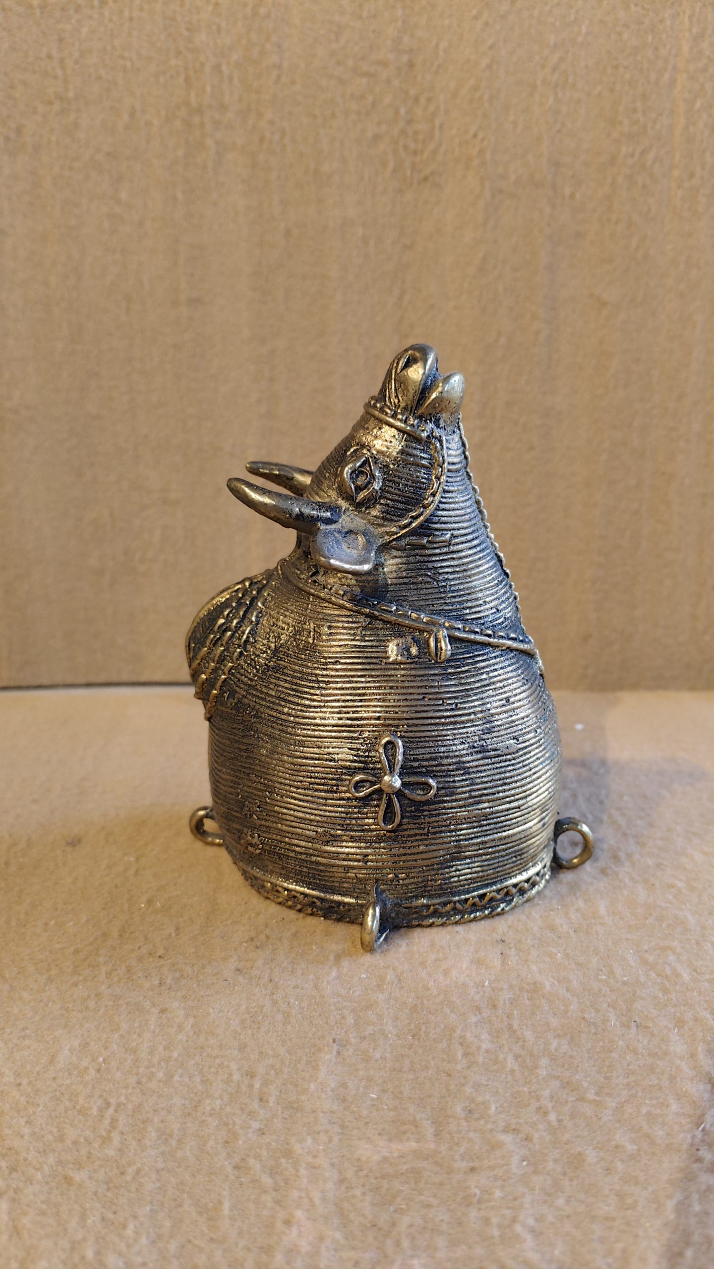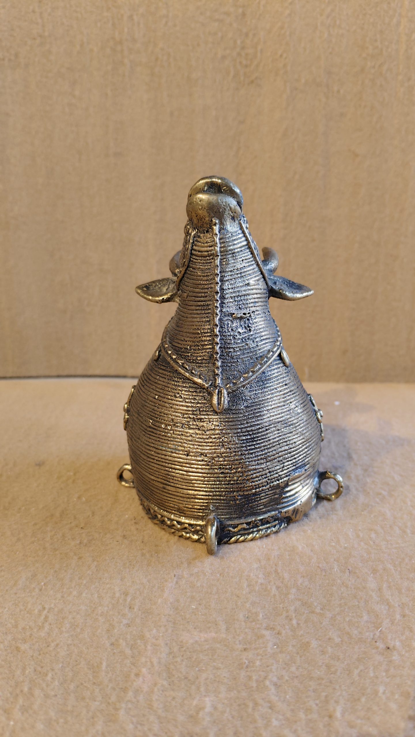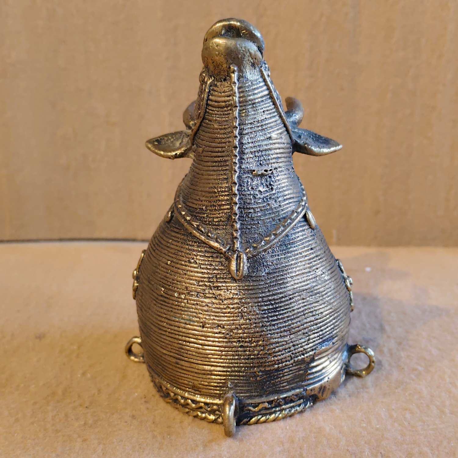 - Material: Crafted from a metal alloy (most likely brass or bronze) using the traditional lost-wax casting (cire perdue) method, which is characteristic of Dhokra art.