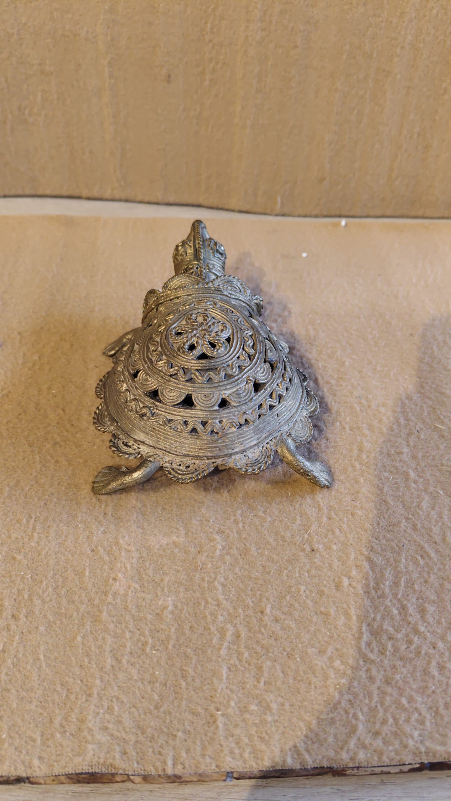 Vintage Brass Tortoise Incense Holder or Filigree Metal Turtle Figurine