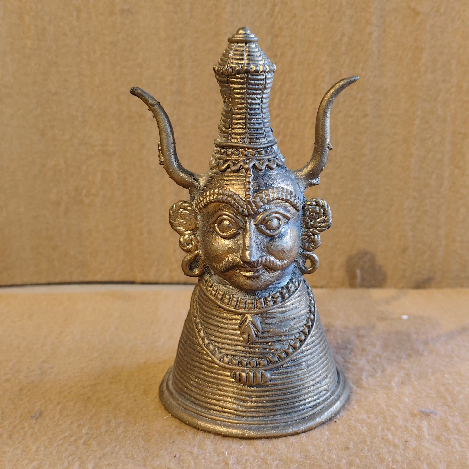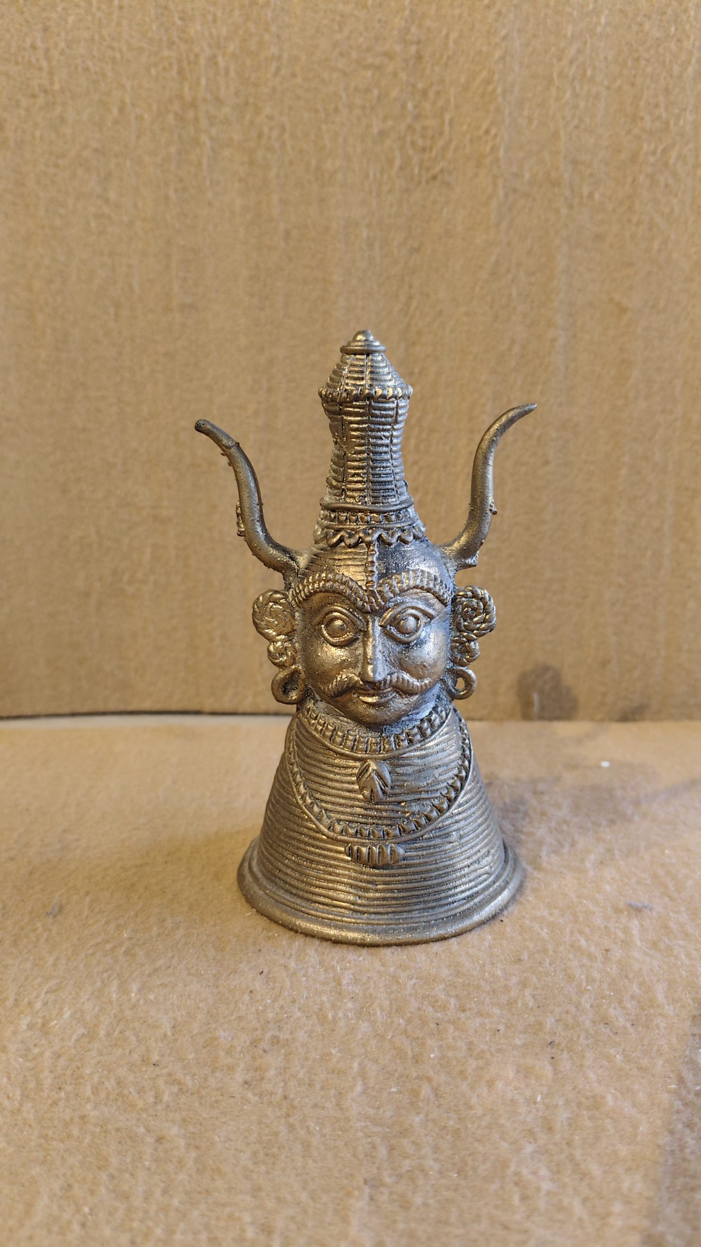 Vintage Brass Tribal Deity Bell or Dhokra Art Bust of a Deity