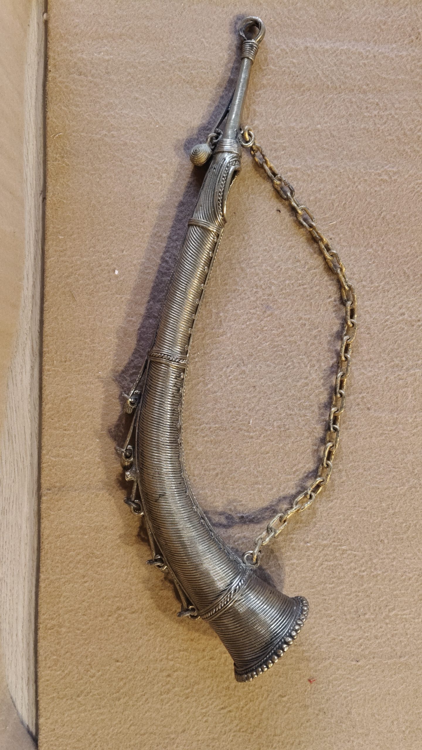 - Tribal Ceremonial Horn: It could be a miniature replica of a horn used in tribal ceremonies, representing a musical instrument.
